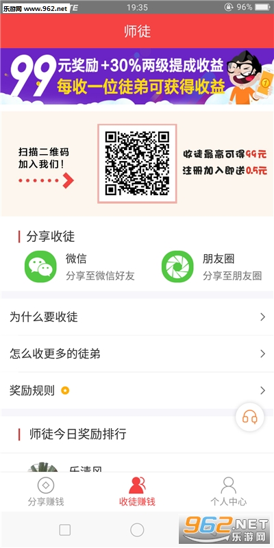 ②收徒最高奖励99元+30%两级徒弟收益提成