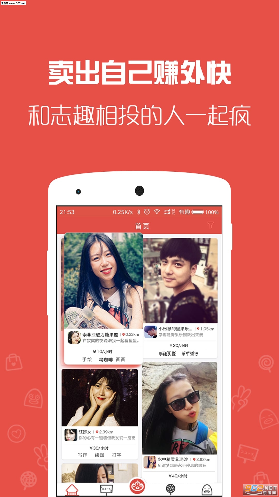 任何人都可以售卖自己技能并自定义价格,有收入更开心