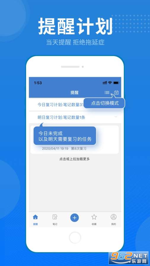 艾宾浩斯记忆笔记软件是一个功能多样的记忆笔记应用软件。它能帮助用户自行编辑笔记,设定提醒,软件会根据艾宾浩斯记忆方案生成定时提醒,使用多次强化记忆,使用户能够更好的记忆笔记的内容。有需要的快来乐游网下载使用吧!!