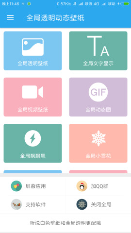 全局透明壁纸能让你自定义设置一张图片为手机的全局壁纸,你在任意界面都能看到这张壁纸,让你的手机更加的个性化。