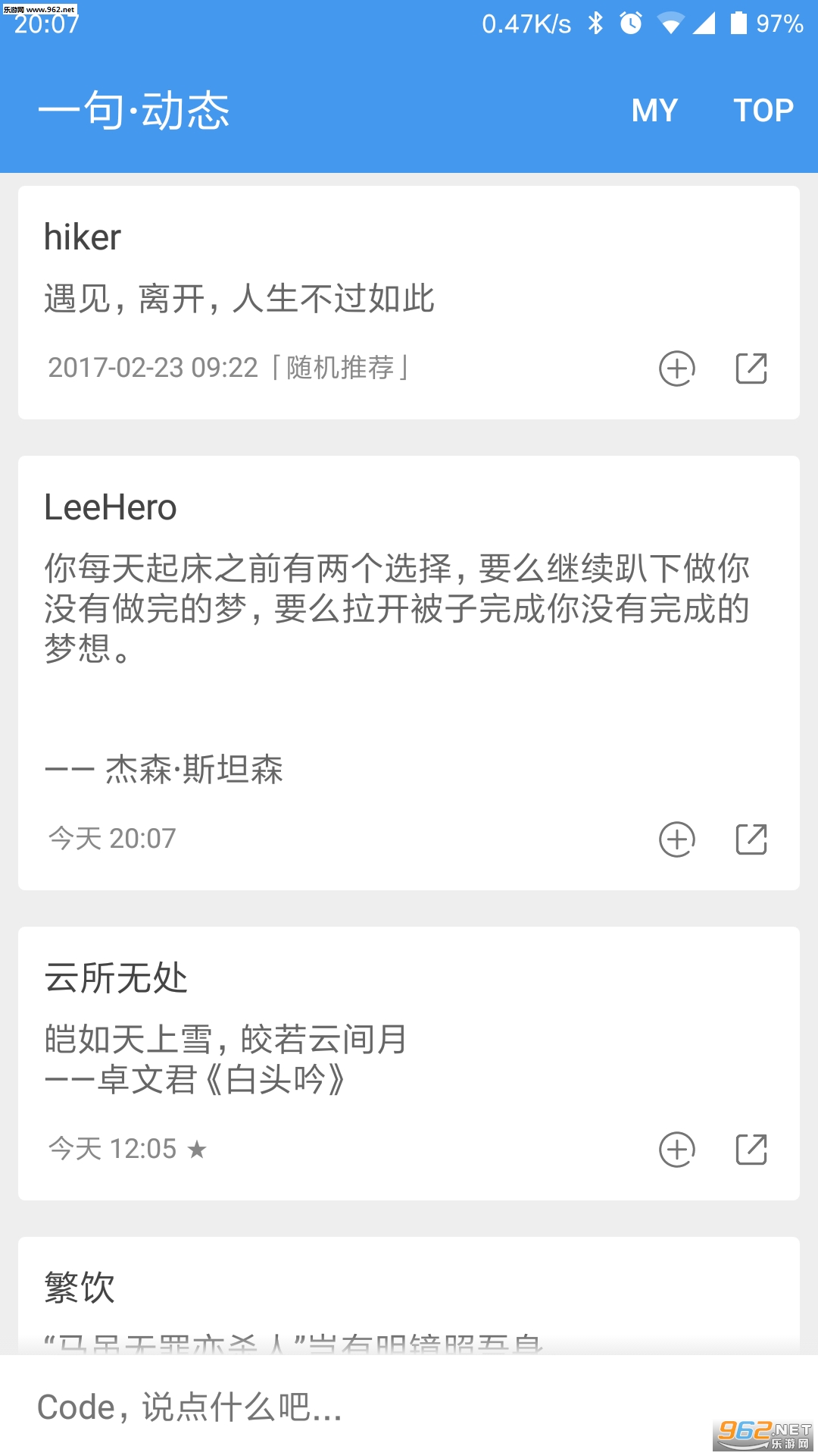 《一句》是一款非常文艺的备忘软件。你可以将重要的事项写在手机桌面上,也可以用来写一些座右铭之类的自己喜欢的一句话。
