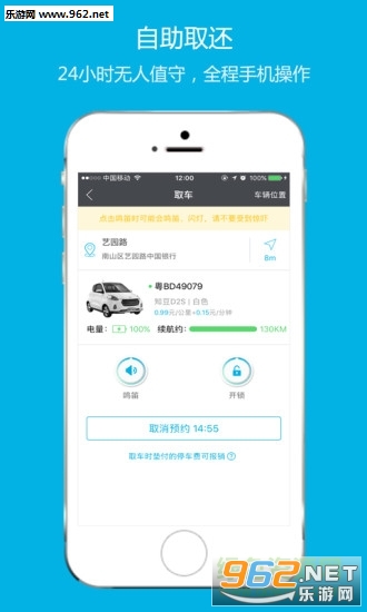 2.没有线下租车点,无需用户自主充电,无需还车到指定地点。用户自主预约车辆、租车、还车、结算,费用的透明化,做到随借随还、无其他人员干预。