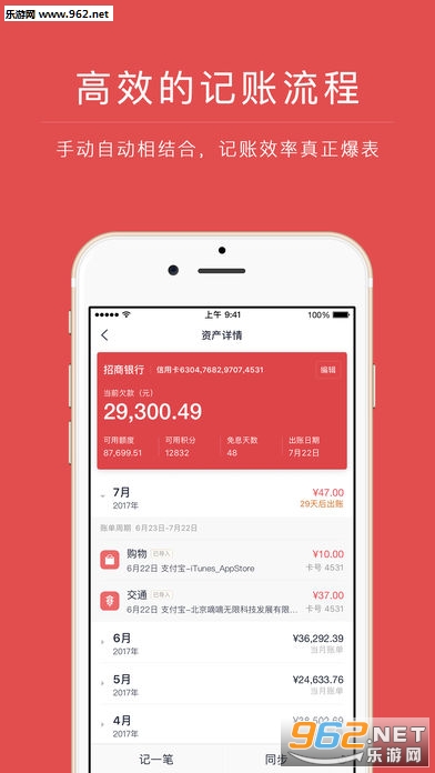 轻松同步信用卡、借记卡、支付宝最新账单,满足80%记账需求;