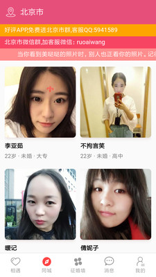 2.首页:最美丽的认识从寻TA开始,直接查看会员的真实头像及信息,根据个人要求进行筛选在第一时间找到合适的人,喜欢的人可以直接收藏让对方知道你的心意。