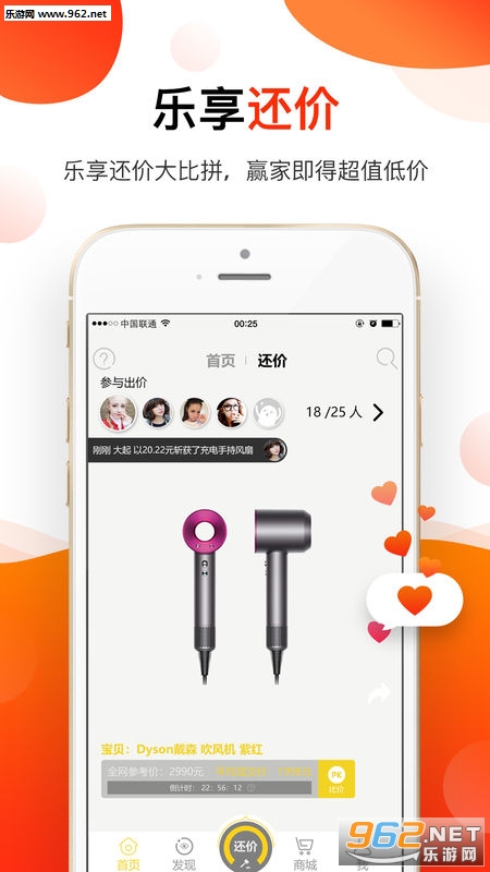 一款新式的手机购物软件,类似于拼多多,但是不同于它的是用户在上面出价后,其他的用户也同时可以出价,相当于竞拍的模式,最终没有买到商品的原价退回。感兴趣的朋友快来体验吧。