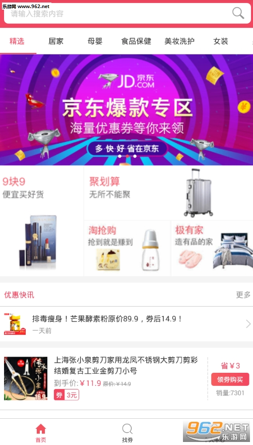 特色推荐:0元试用、正品9块9包邮、手慢无、历史最低价;