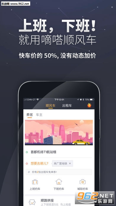 1. 全新界面,顺风车、出租车自由切换;