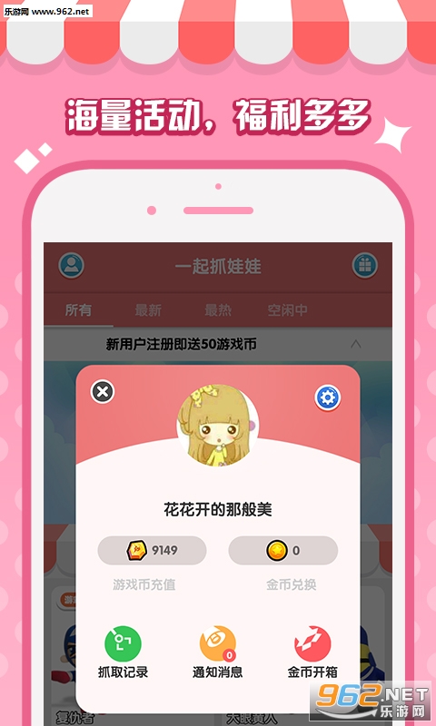 一起抓娃娃,有多款可爱的娃娃等你来抓。