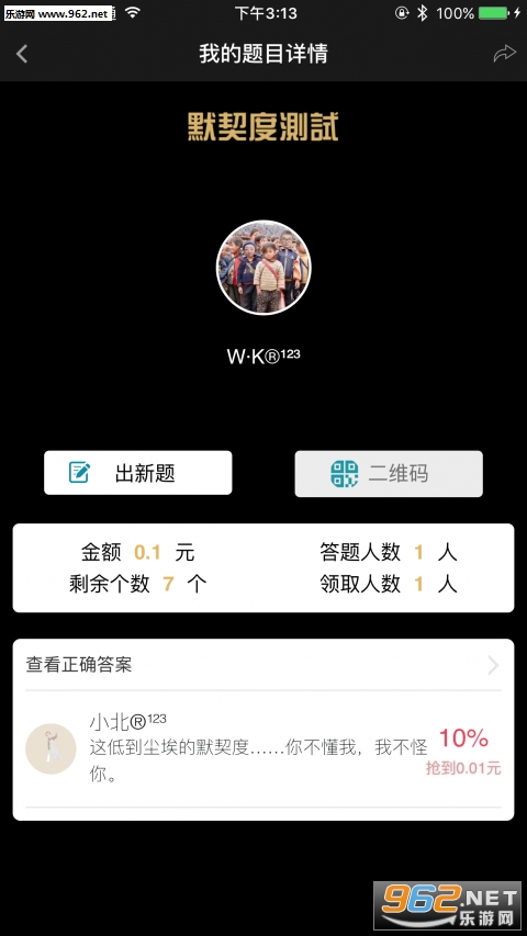 2、用户可以创建自己的题库供好友回答,好友答题后可以进行了解度匹配。