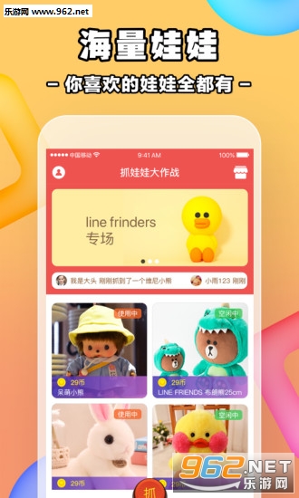 上线即抓,无需等待。数千万台娃娃机,上线即可以操作抓娃娃,抓的娃娃越多,得到的奖励越多,优惠大大的呦!
