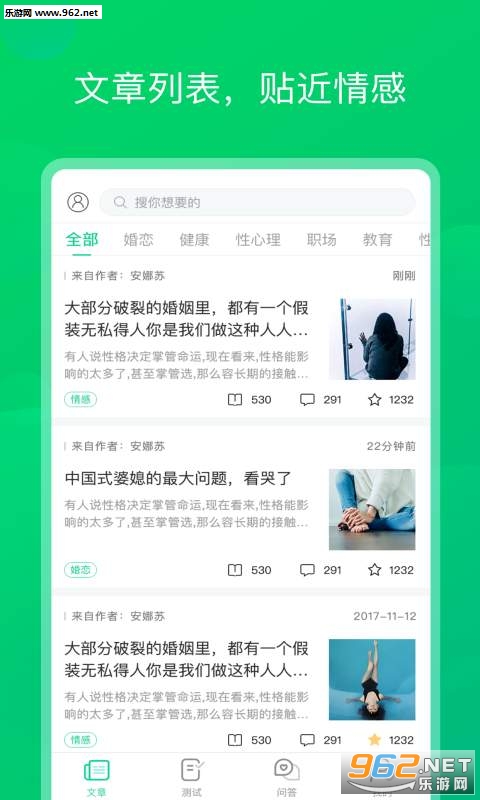 在这里,你可以对你的心理烦恼进行匿名或公开提问,也可以解答别人的问题困扰。你还可以从别人的提问中搜索答案。芝麻解忧还提供分门别类的心理文章阅读,文章实时更新;提供专业的心理测试。
