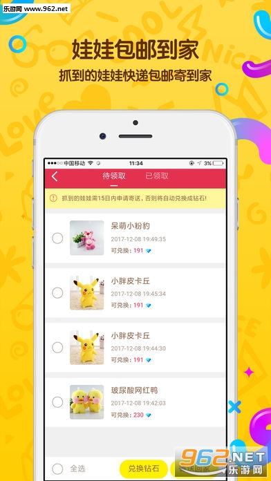 抓到娃娃兑换钻石、寄送到家、兑换商品,多种玩法任你选