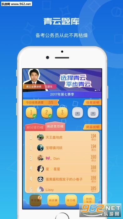 3、而青云题库则提供了青云公务员培训中心独有真题模拟演练、日常任务练习、和趣味常规赛。