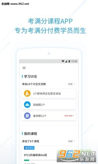 考满分课程app,专为考满分付费学员而生,专业帮助考满分雅思、托福、GRE、GMAT付费学员提高学习效率,提升考试分数;考满分课程,提分利器,伴你成长,助你圆梦。