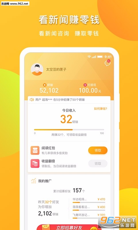 【有钱赚】阅读领金币、推荐好友拿现金,极速提现轻松畅享阅读时光。