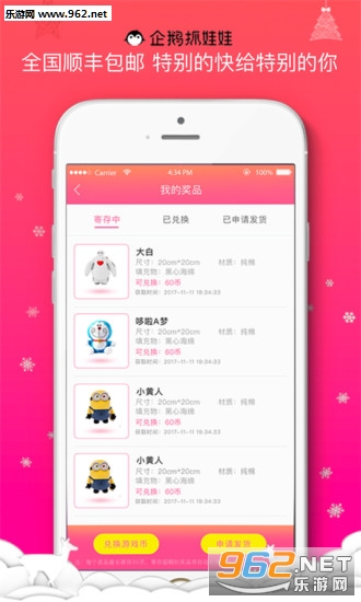 《企鹅抓娃娃邀请码》这是一款手机抓娃娃软件。用户不需要出门也不用排队,用手机就能体验真实的抓娃娃乐趣。软件操作简单,玩法丰富,而且这里的娃娃种类非常丰富,抓到娃娃还支持全国包邮。感兴趣的用户赶紧下载APP体验吧!
