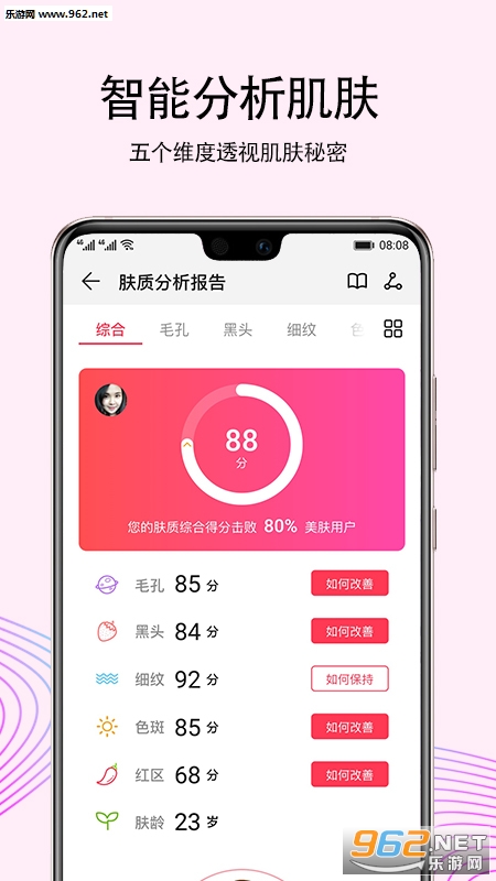 “爱肌肤”作为华为首款移动端皮肤检测护理类产品,利用AI皮肤分析技术,从5个维度科学检测肌肤,为您提供个性化护理建议。专为P20系列用户和Nova3用户打造,让爱美的您重新认识肌肤,并帮您科学护理。