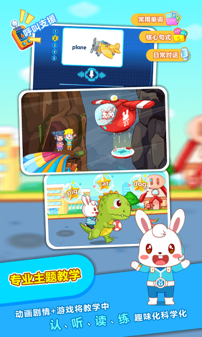 5、主线课程:系统学习高频词汇、短语和常用句式,让孩子在趣味十足的救援故事中不知不觉的认识英语,使用英语。