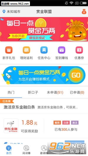 《赏金联盟app》是一款热门的手赚平台,没有时间限制,适合大学生兼职,上班族的赚外快,可以直接进入其中,分享给大家,让更多人加入其中,阅读分享,还有支付宝,渠道的提出现金,可以更快捷的交易,安全的兼职新模式。
