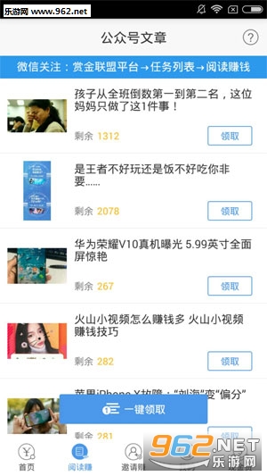 ③阅读模块:阅读赚零花,用户一键领取任务,阅读即可赚钱