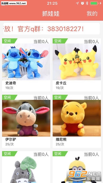 《快乐抓娃娃app》是一款手机娃娃机应用,在手机上体验最正统的抓娃娃玩法,抓到的娃娃还能邮寄到你那里哦,不用出门也能体验最棒的娃娃机,还有超多精彩内容等你体验哦,喜欢抓娃娃的你还在等什么?赶紧下载挑战全国各地的娃娃高手吧!