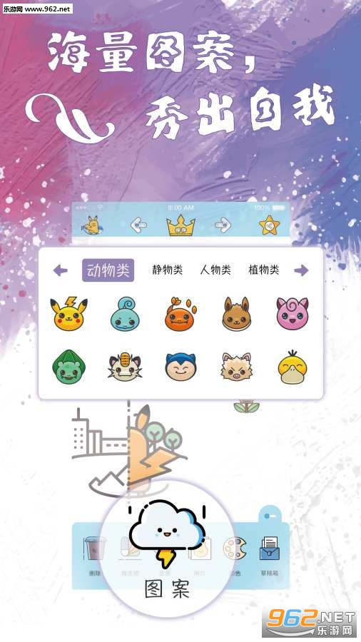 1.涂鸦神器:多色精美画笔,任意涂绘;多款图案元素,随意组合。绘画零基础也能成为神笔马良!