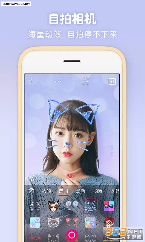 超萌,超好玩的自拍相机。专为人像定制的美颜滤镜,瘦脸大眼,实时美妆,让相机中的你美破天际。超多美萌动效贴纸,让你瞬间成为超卡哇伊的那个。当下流行的魔幻背景,手势触发,3d装饰,潮爆MV,应有尽有。