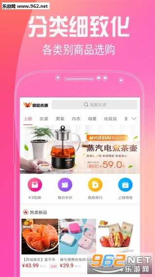 每日更新上千种商品,低至1折再包邮,收录商品均经过 人工审核。服装鞋帽,居家文体,箱包配饰,数码母婴, 应有尽有。