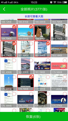 4.长按图片可查看大图,轻点照片可以勾选要恢复的相片。
