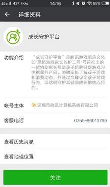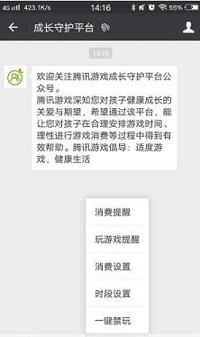 腾讯游戏成长守护平台致力绿色健康的游戏体验,坚信这是快乐的内核。“成长守护平台”是腾讯游戏响应文化部网络游戏家长监护工程号召推出的一款协助家长帮助孩子培养健康游戏习惯的服务产品。协助家长了解孩子游戏和消费动态,并通过合理设定孩子游戏行为,以达到守护其健康成长的核心目的。