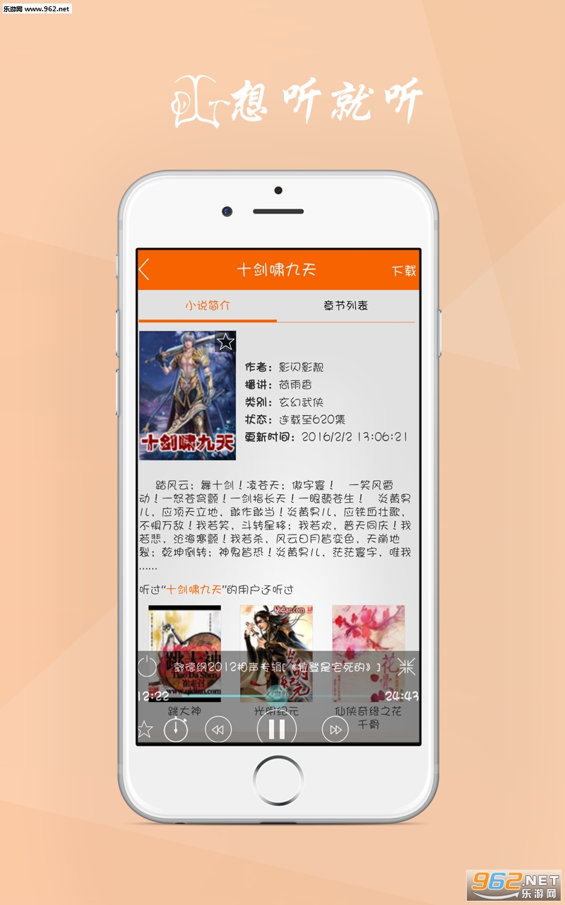 1、最优质专业的内容呈现,最简洁的听书方式,想听什么就听什么;
