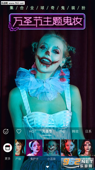 《美妆相机万圣节主题鬼妆版app》这是一款好用的美颜相机软件。全新万圣节主题鬼妆上线了,集合各种猎奇的鬼妆装扮。用户自由设置瞳色、口红、脸部装饰等,打造百变的万圣节鬼妆,还可以转发到朋友圈秀一把。感兴趣的用户赶紧下载体验吧!