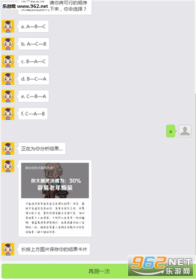 《测出你大脑的灵活度软件》是一款最近朋友圈非常火爆的心理测试工具,你的大脑是否灵活呢?得老年痴呆症的几率是多少呢?到底影响力有多大呢?可能就是需要你自己把握的了,有不同的测试结果你可以看看内心的自己到底是怎么样的。