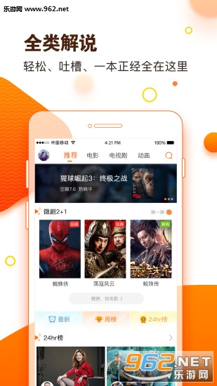 微剧院:换个姿势看电影!这里提供最全的几分钟解说视频,5分钟看剧,轻松、吐槽、一本正经全在这里,从此看片告别枯燥、漫长!