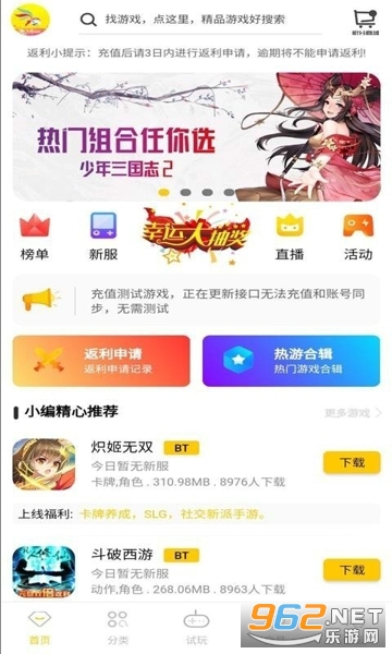 乐舞游戏盒子平台app专注手游福利,为你打造功能全面,资源丰富的手机游戏平台,各种内测资格,抢先试玩,还有充值福利,gm账号等着你,玩起来十分的过瘾