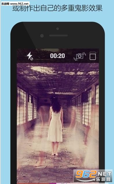 《魔鬼相机》顾名思义,应该能想到这 App 能让你拍出让人菊花一紧的“灵异”照片。所以它最突出的功能就是重影摄影,即通过多次曝光,让同一个人物出现在同一张照片上,不使用任何PS,直接用手机拍摄出来!