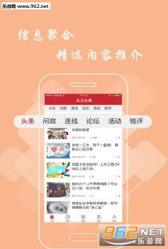 《九江头条新闻手机客户端》是一款为九江本地用户打造的新闻资讯平台,图在“信息爆炸”时代凭借技术能力驱动有价值、更高效的阅读体验,每一位用户都可以依据个人喜好,一键定制私人专属实时简报,将你感兴趣的统统记录收纳,现已全面上线,赶紧下载吧!