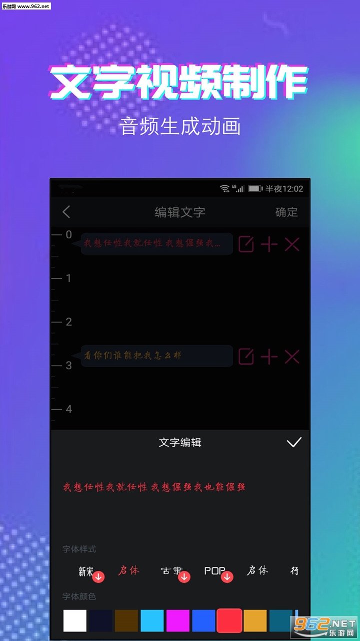 文字视频秀:提供多种动画背景风格、文字字体,视频音乐配乐支持自定义选择,让你的小视频更出彩!