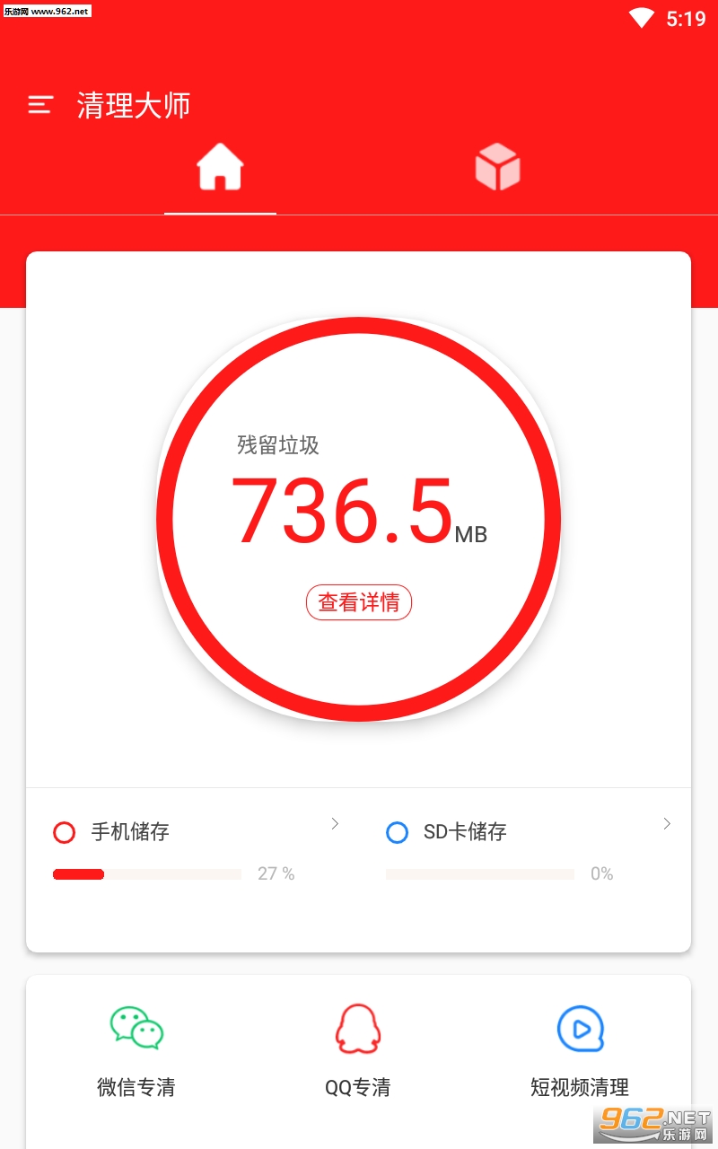 点击小火箭一键清理手机缓存、强力加速手机运行更流畅