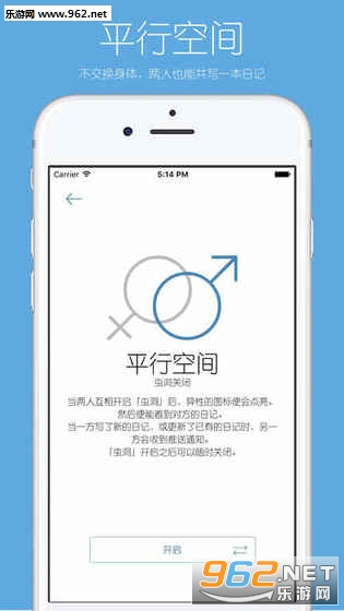-「平行空间」功能:两个人可以互相开启平行空间,便能看到彼此的日记。就像动画里面一样。