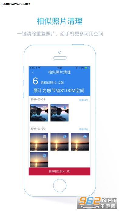 运用多种图形比对算法,找出重复或者相似的照片视频,直接删除重复照片视频,节省手机存储空间.