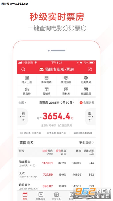 影院实时票房:更及时,更丰富,定位到影院!帮助影院经理知己知彼,更准确的制定经营决策;