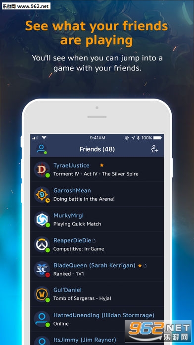 暴雪战网移动应用让你可以随时随地和好友保持联络。跟朋友聊天,了解他们在玩什么游戏,添加新的好友——用你的移动设备就可以轻松实现。
