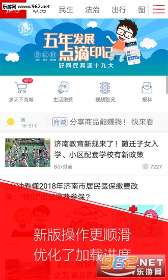 它是济南市委市政府新闻发布平台、应急信息发布渠道、市民生活服务信息集散地,具有新闻,政务,直播、点播、专题、图片、爆料、社区、公交、路况、天气、阅读、圈等功能模块,是您畅享无线城市的主流平台。