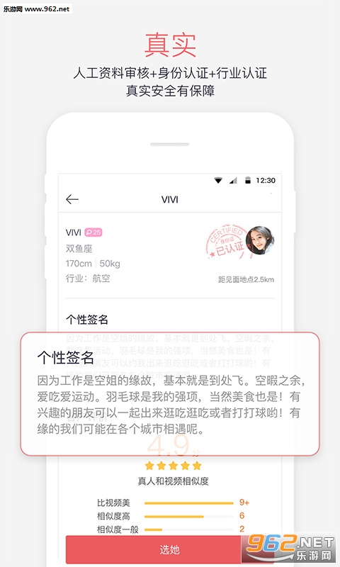 【高颜值】100%现场视频认证+真人与视频相似度评分,杜绝照骗。