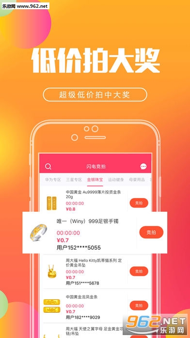 所有商品0元起拍,每加价一次仅上涨0.1元,让你想不到的超低成交价带走宝贝!