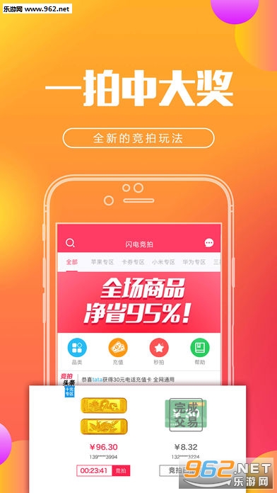 《闪电竞拍app》是一款全新互联网竞拍购物平台,专门为用户提供最便宜,最实惠的物品抢购,让用户花费最少的钱得到自己心仪的产品,还可以为用户提供二手货物甩卖,非常的方便,需要的用户千万不要错过!