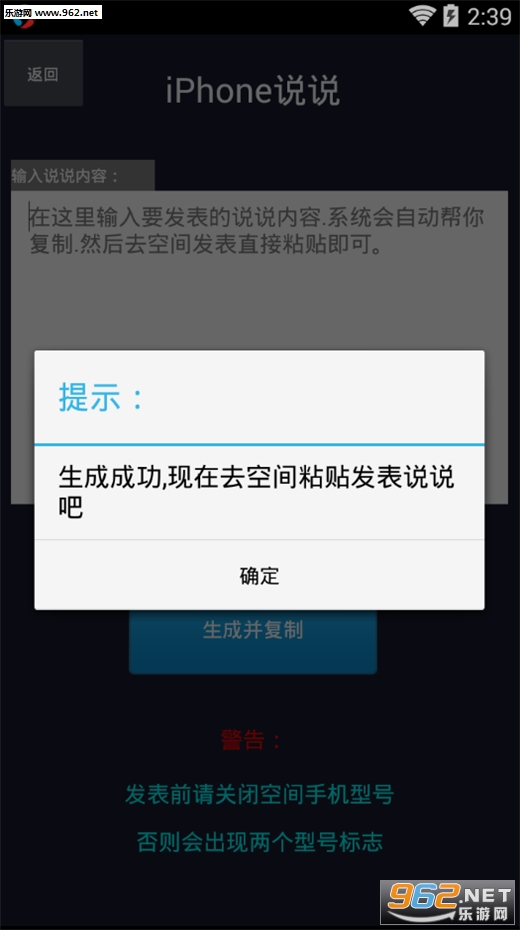 4.点击生成并复制,去空间直接粘贴发表
