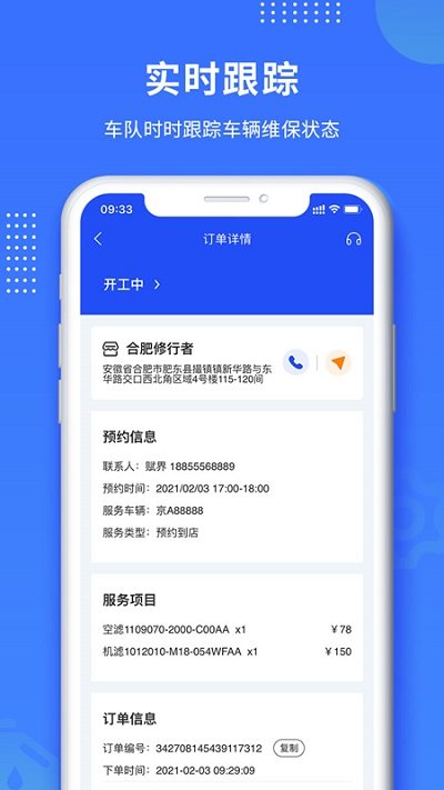 6、赋界卡修提供预约保养功能,车主下单时,App根据车主车型智能匹配适合的保养物品,节省车主选择时间