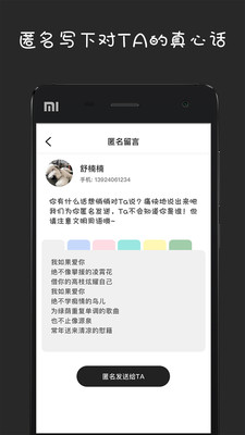 【隐私保护】产品做了最严格的隐私保护,给你一个自由的空间,放心与朋友畅所欲言,而且只有留言被接收者主动分享才能被其他人看到哦~